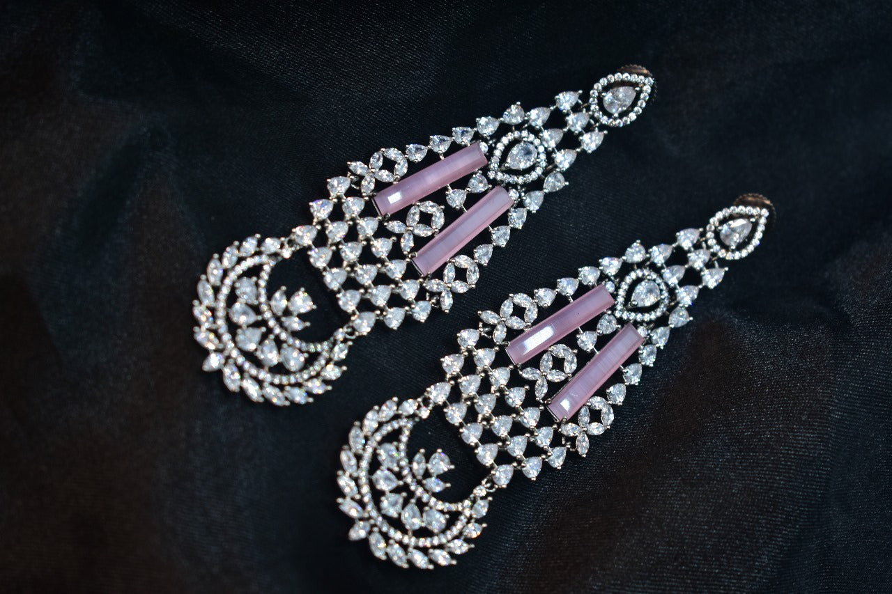 Anvitha Pink Stone Silver Polish AD Designer Earrings