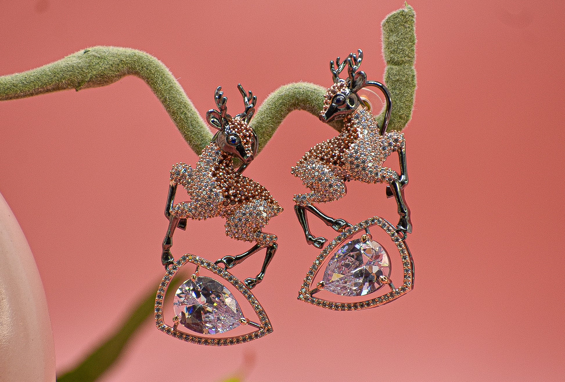 Charvi Rose Gold Polish Deer AD Designer Earrings