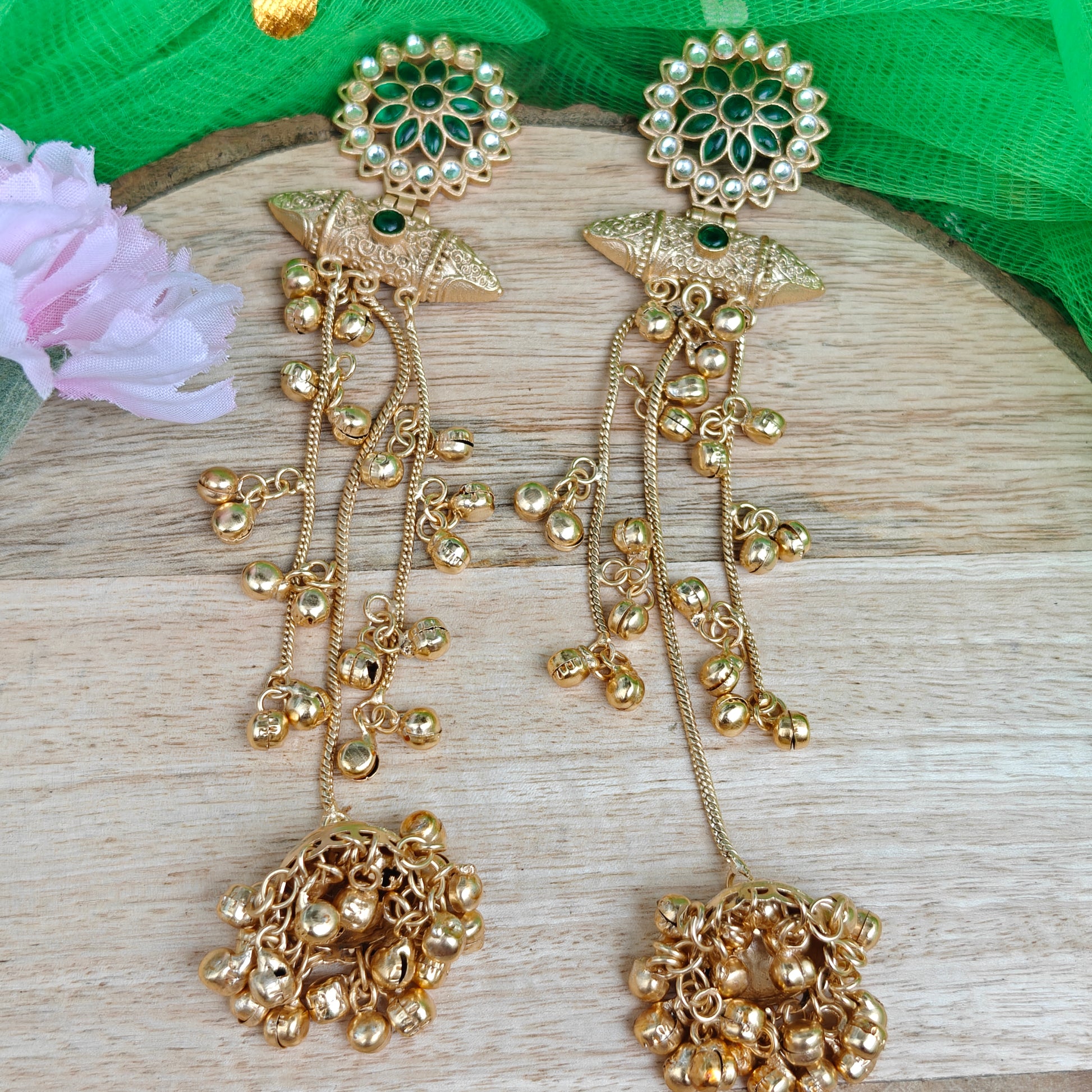Gold-toned Sunehri Jheel Kashmiri Long Earrings is a tribute to timeless craftsmanship, blending traditional artistry with a modern gold-polished finish. Trink Wink Jewels offers you an exclusive collection of Gold-toned Sunehri Jheel Kashmiri Long Earrings fashion Jewellery in various designs. Made from durable brass, their cascading silhouette and intricate detailing evoke elegance and cultural richness. Ideal for festive occasions and ethnic ensembles, it adds contemporary looks with effortless charm. Buy from our collection and bring your beauty home.