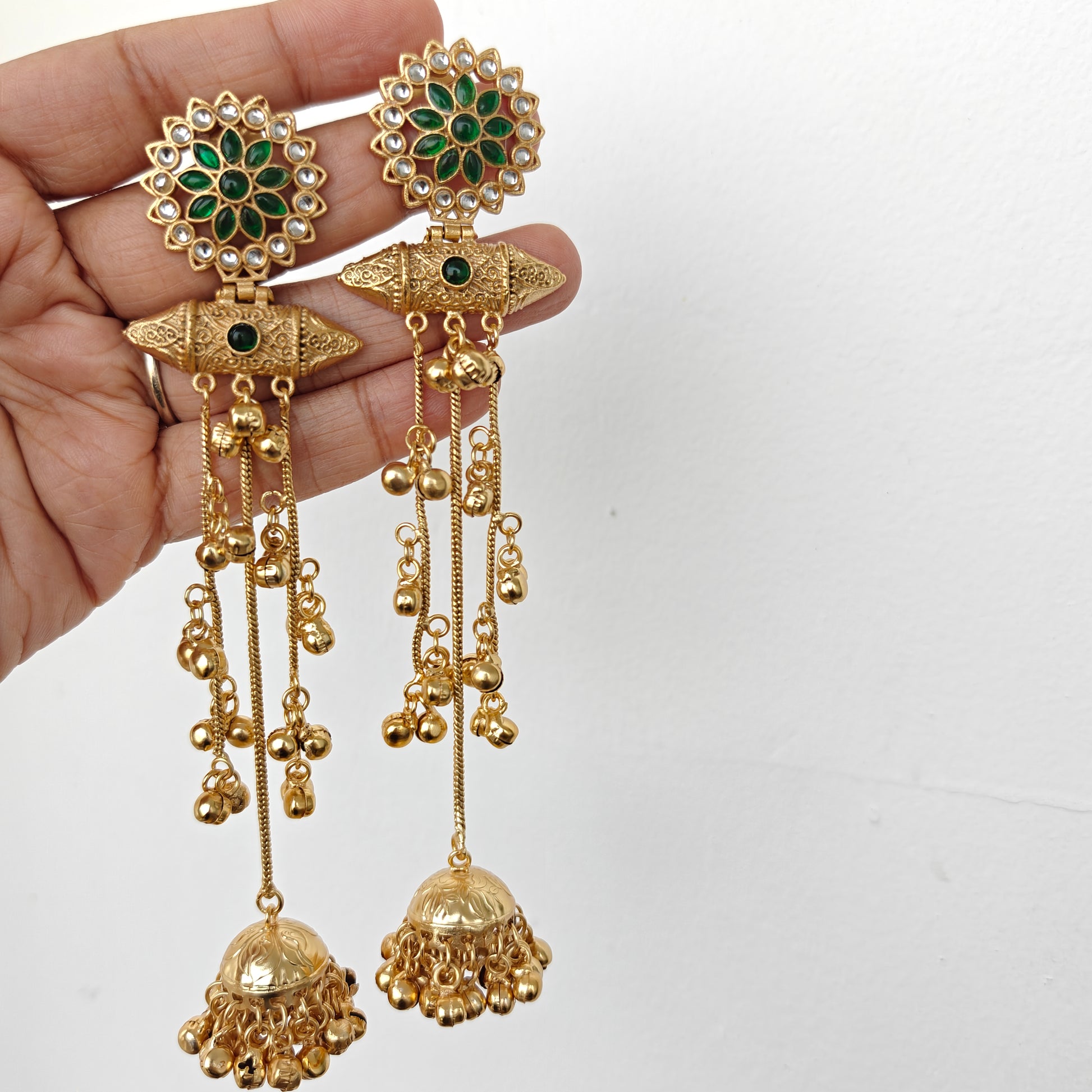 Gold-toned Sunehri Jheel Kashmiri Long Earrings