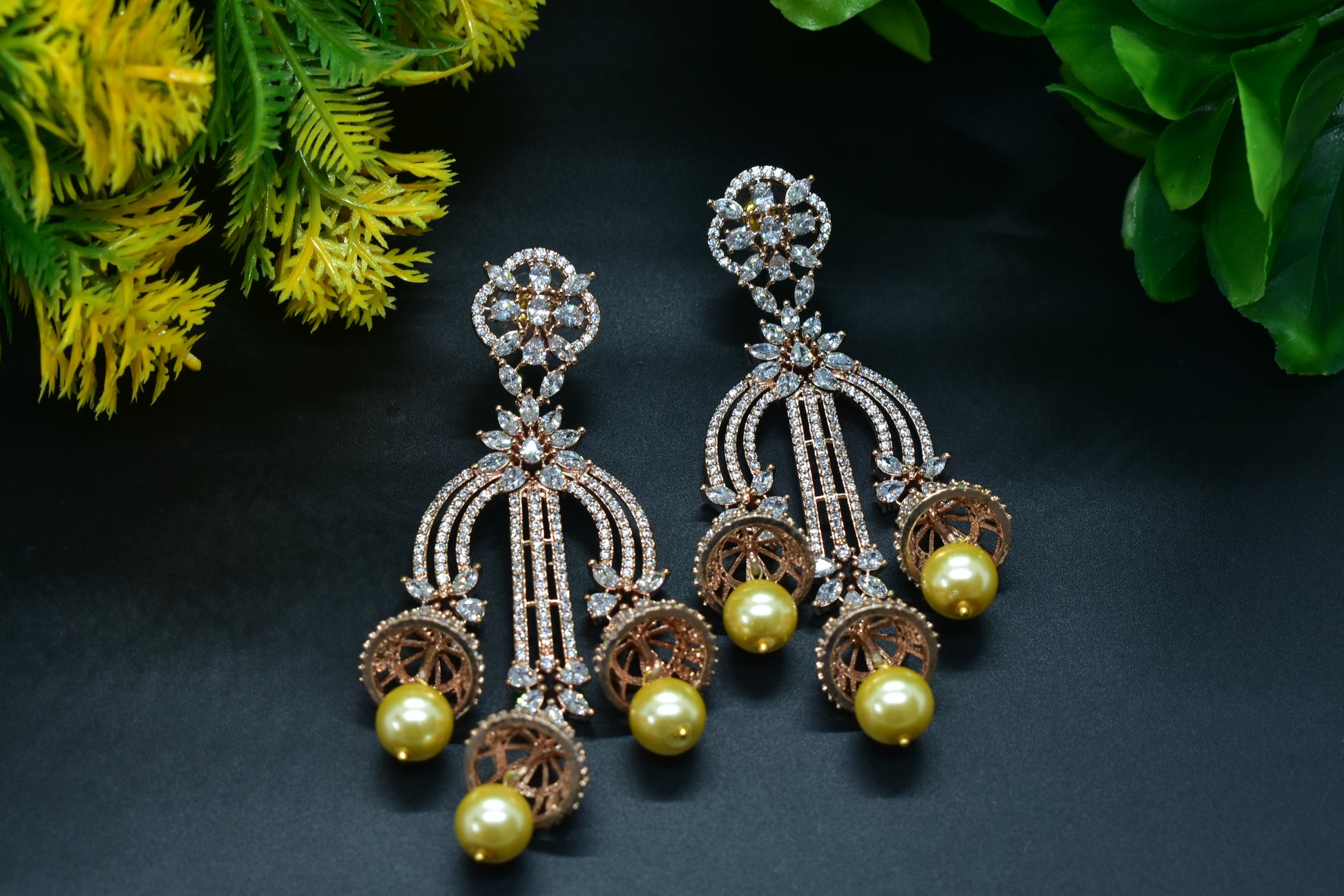 Ishleen Chandelier Rose Gold Polish AD Designer Earrings