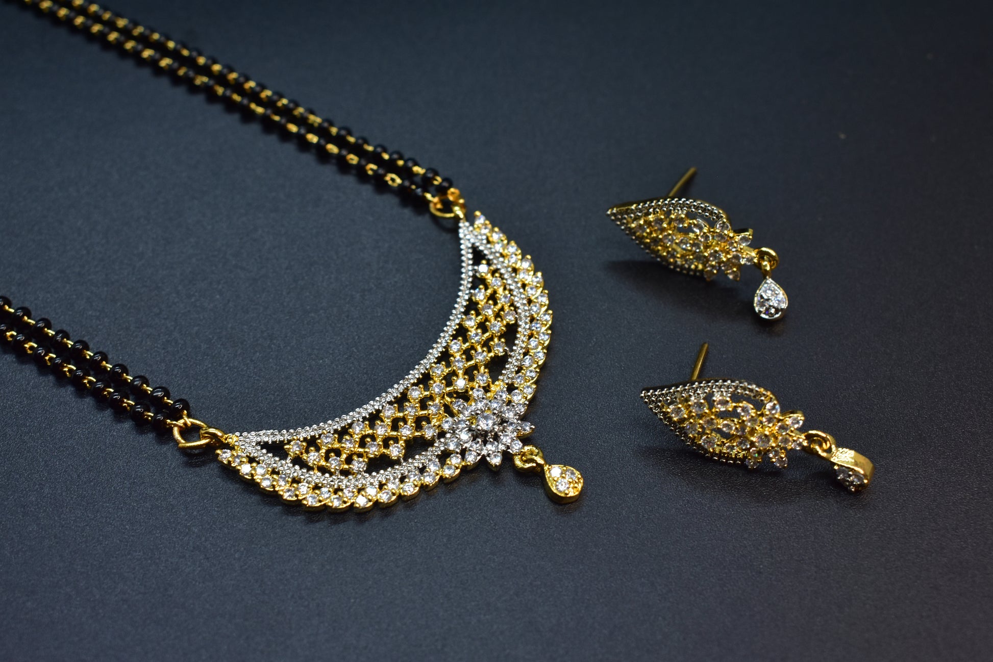 Are you a jewellery lover? If so, then our mangalsutra will surely amaze you. With us, you can experience some classic collection of designer necklaces. You will just love those as all our necklaces come in unique design. Basically, we deal in Kimaya White Stone CZ Designer Mangalsutra Set of all varieties, whether it is light or heavy. However, we can guarantee you that; our mangalsutra will suit any kind of attire. Apart from our designer mangalsutra, we also deal with traditional necklaces as well as some artificial ones too.