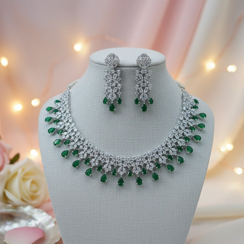Are you a jewellery lover? If so, then our Pari CZ Designer Necklace Set will surely amaze you. With us, you can experience some classic collection of premium necklace. Elevate your elegance with a dazzling Pari CZ Designer Necklace Set with zirconia stones —crafted to mimic the brilliance of diamonds at a fraction of the cost. Perfect for everyday glamour or special occasions, its radiant sparkle and timeless design make it a must-have accessory. Discover affordable luxury that turns heads and complements every outfit with effortless charm. will suit any kind of attire. We guarantee you with best product in affordable rates.