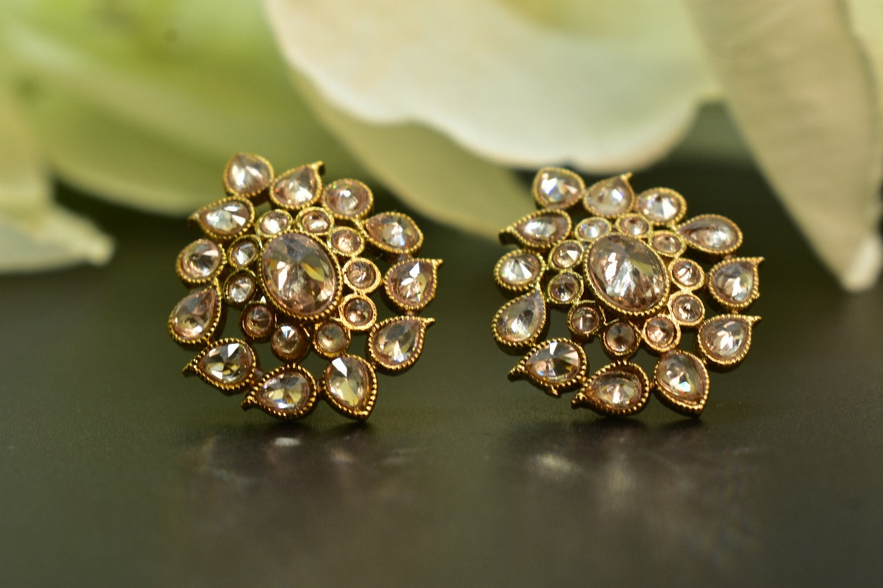 Get ready to dazzle with Riva Kundan Designer Earrings ! Made with CZ stones and AD accents, these earrings add a touch of elegance to any outfit. Featuring 2-tone plating and premium quality, they're the perfect accessory for any occasion. Unleash your inner sparkle with Riva Kundan Designer Earrings !