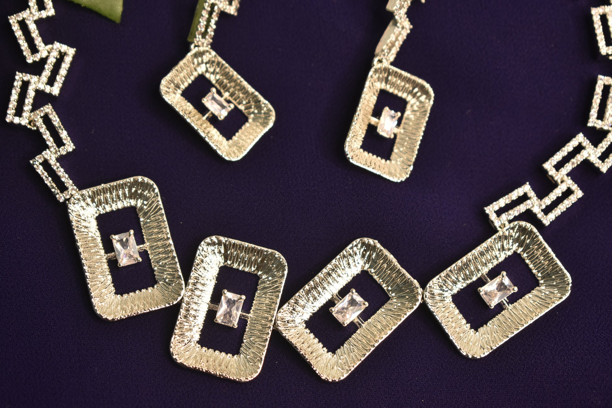 Sunhari Rose Gold Polish CZ Designer Choker Set