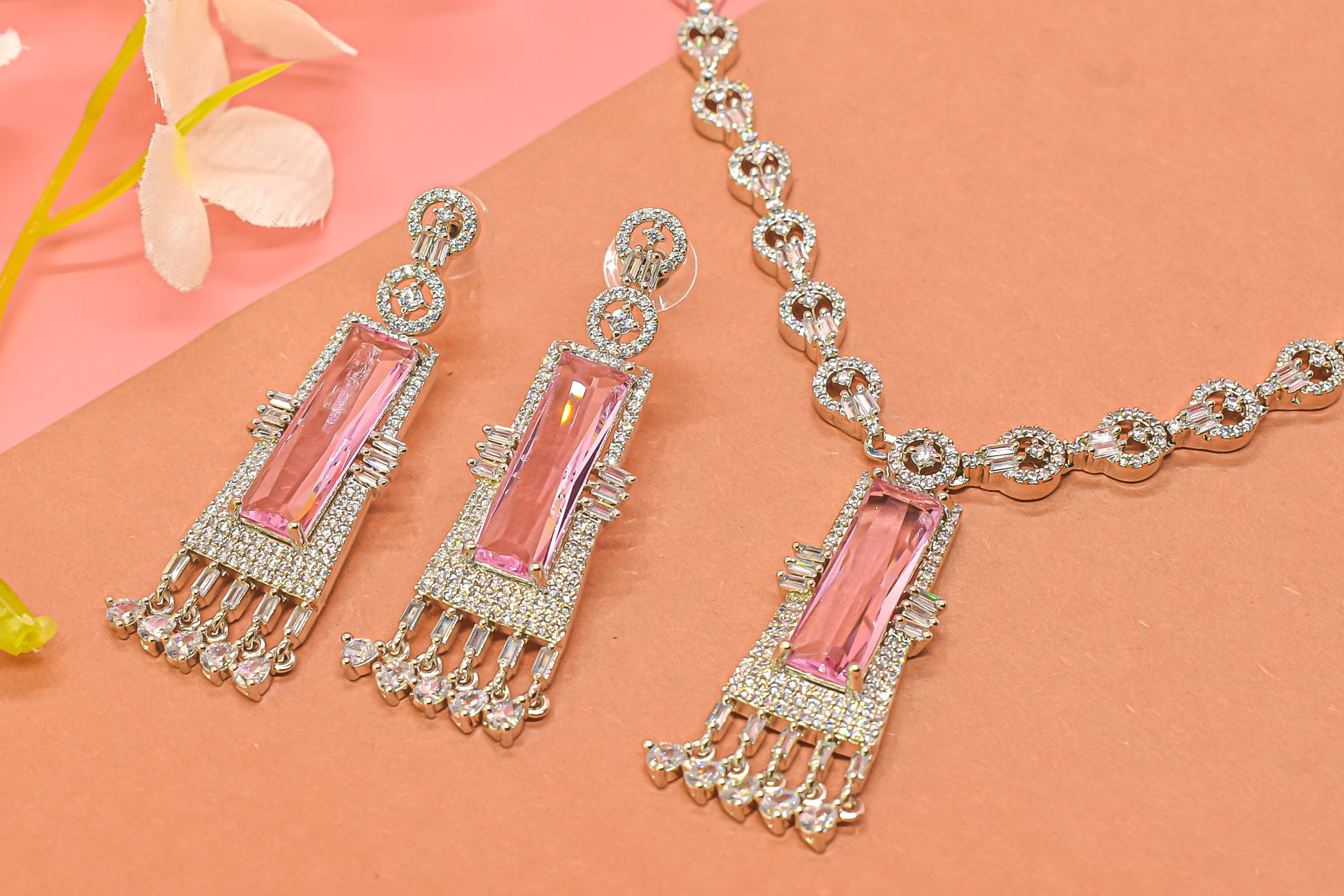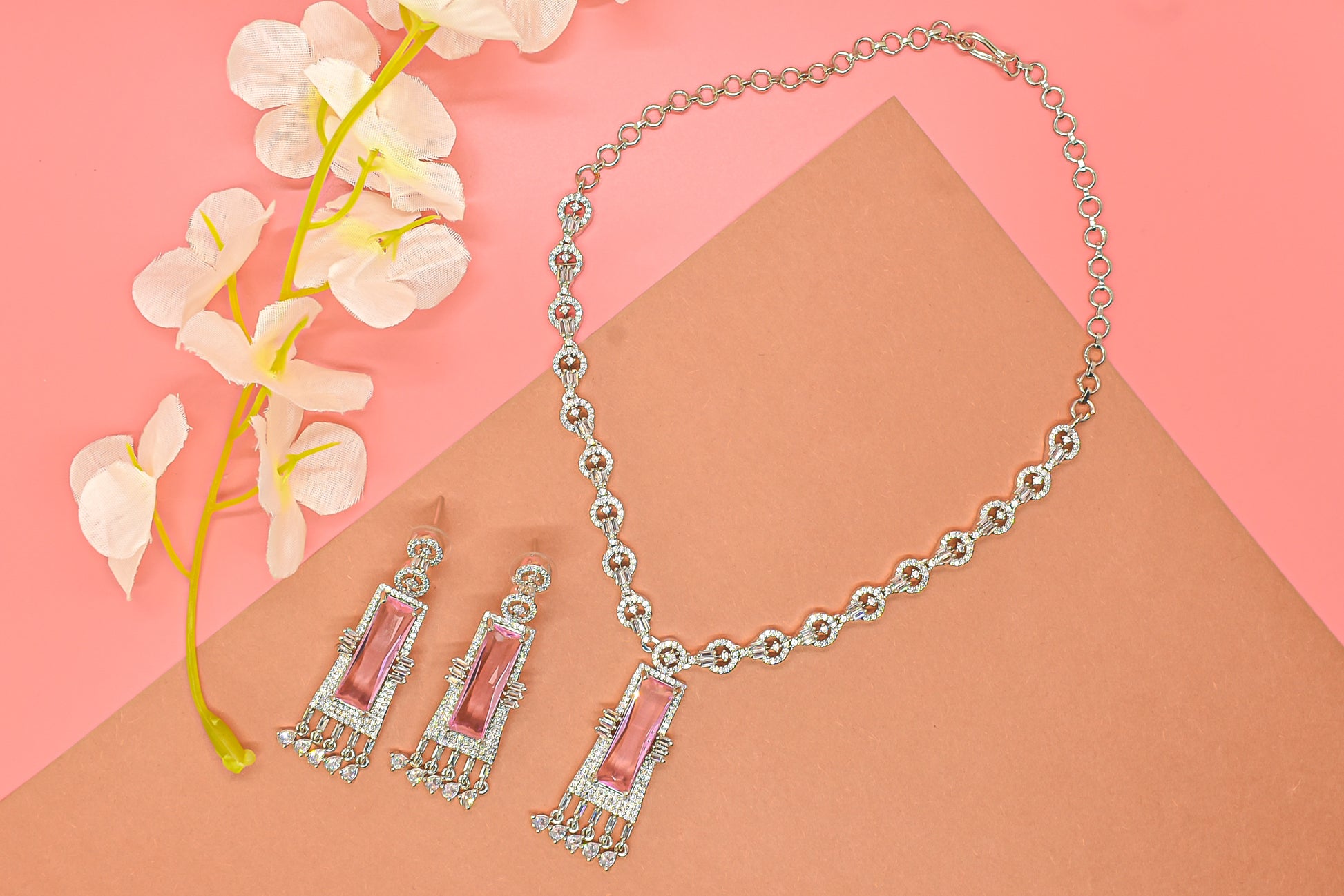 Vrushi Silver Polish Pastel Pink CZ Necklace Set