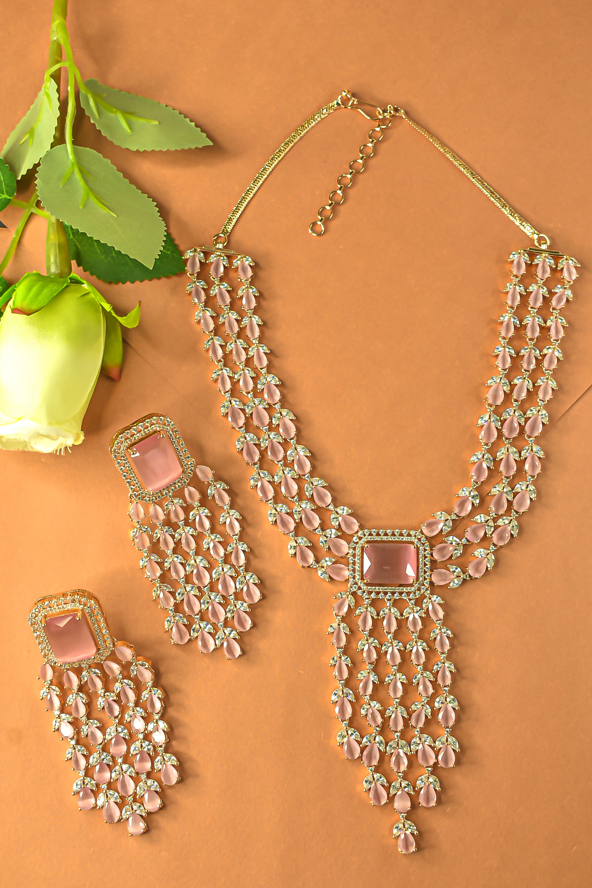 Are you a jewellery lover? If so, then our Giordi Baby Pink CZ Designer Necklace Set will surely amaze you. With us, you can experience some classic collection of premium necklace. Elevate your elegance with a dazzling Giordi Baby Pink CZ Designer Necklace Setwith zirconia stones —crafted to mimic the brilliance of diamonds at a fraction of the cost. Perfect for everyday glamour or special occasions, its radiant sparkle and timeless design make it a must-have accessory. Discover affordable luxury that turns heads and complements every outfit with effortless charm. will suit any kind of attire. We guarantee you with best product in affordable rates.