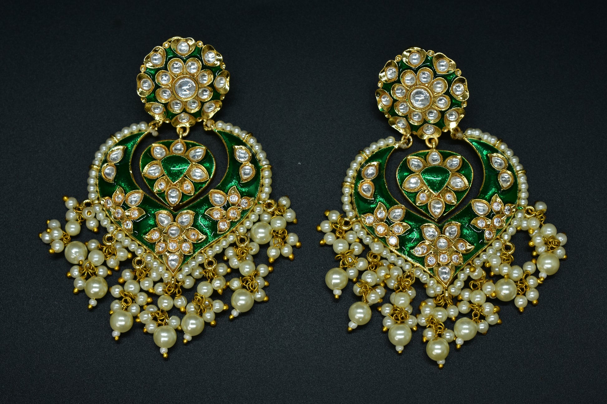 Get ready to dazzle with Tia Pearl Kundan Designer Earrings ! Made with CZ stones and AD accents, these earrings add a touch of elegance to any outfit. Featuring 2-tone plating and premium quality, they're the perfect accessory for any occasion. Unleash your inner sparkle with Tia Pearl Kundan Designer Earrings !