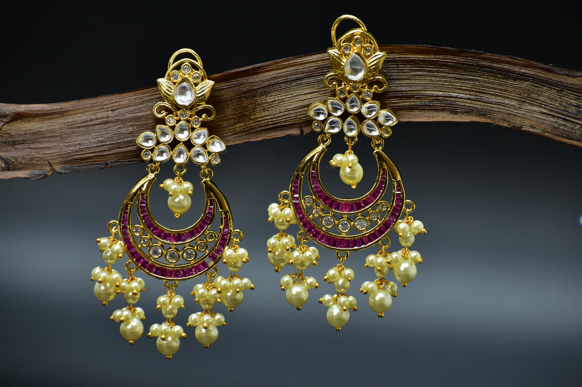 Get ready to dazzle with Vanya Pearl Kundan Designer Earrings ! Made with CZ stones and AD accents, these earrings add a touch of elegance to any outfit. Featuring 2-tone plating and premium quality, they're the perfect accessory for any occasion. Unleash your inner sparkle with Vanya Pearl Kundan Designer Earrings !